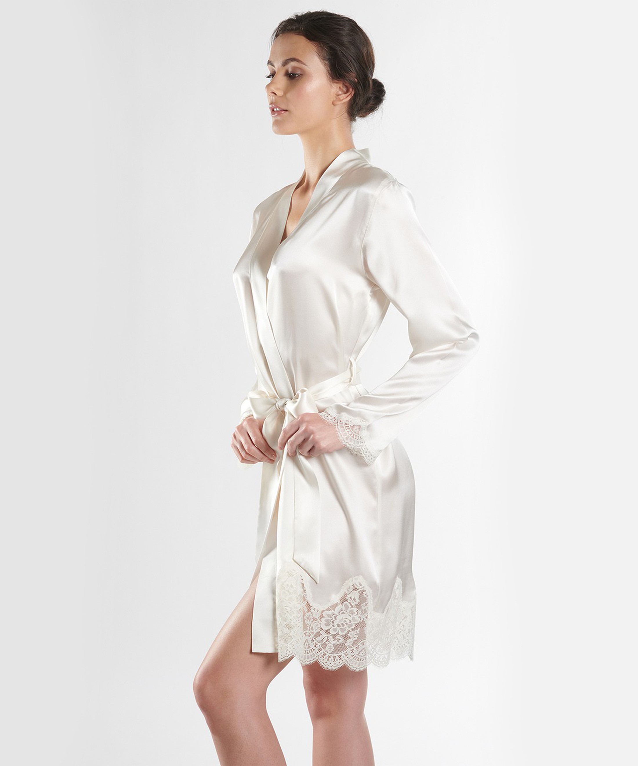 Erittäin ylellinen, luonnonsilkkinen aamutakki Aubadelta.