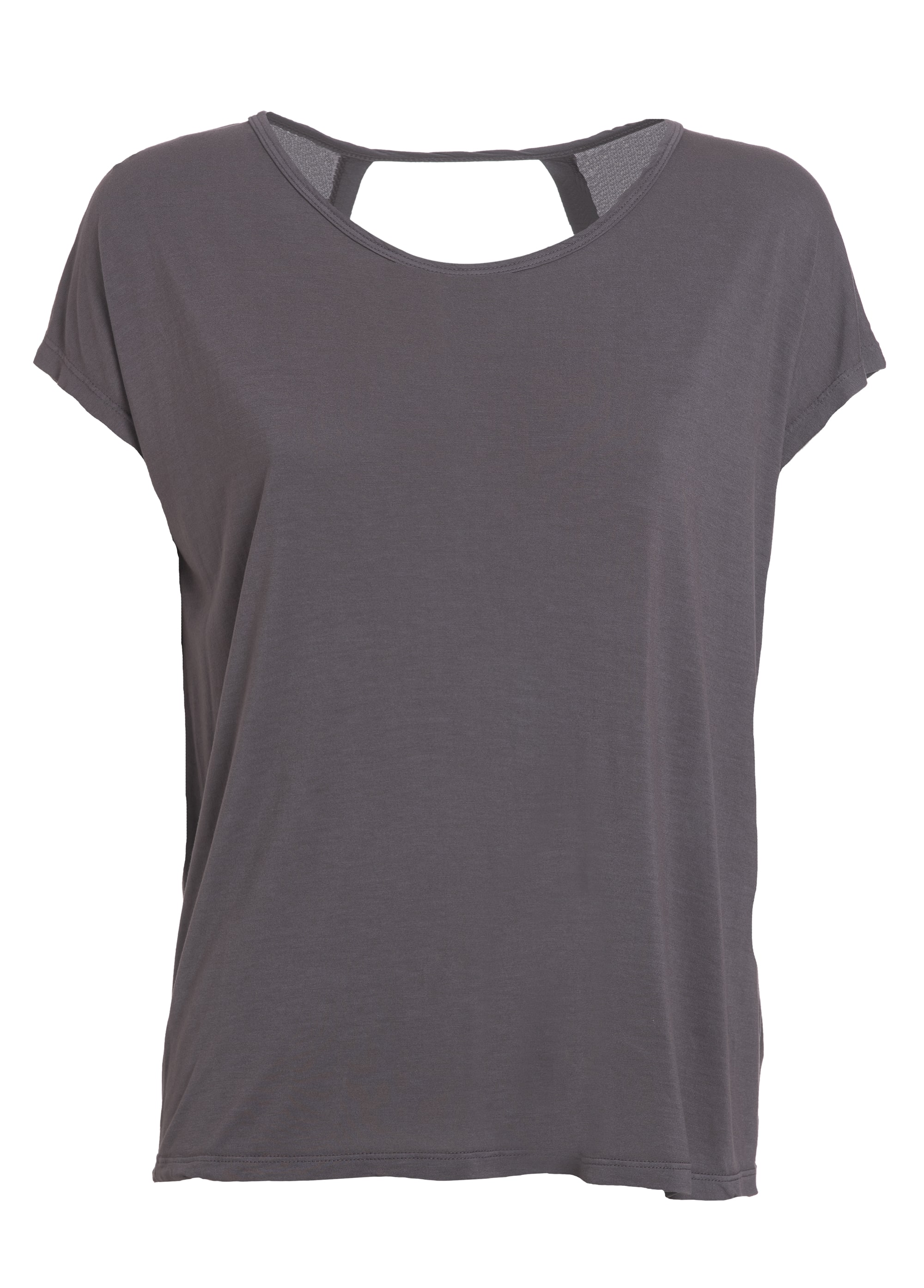 Paita on edestä sileä, malli on hiukan väljä ja takaosassa on kaunis printti sekä halkio.