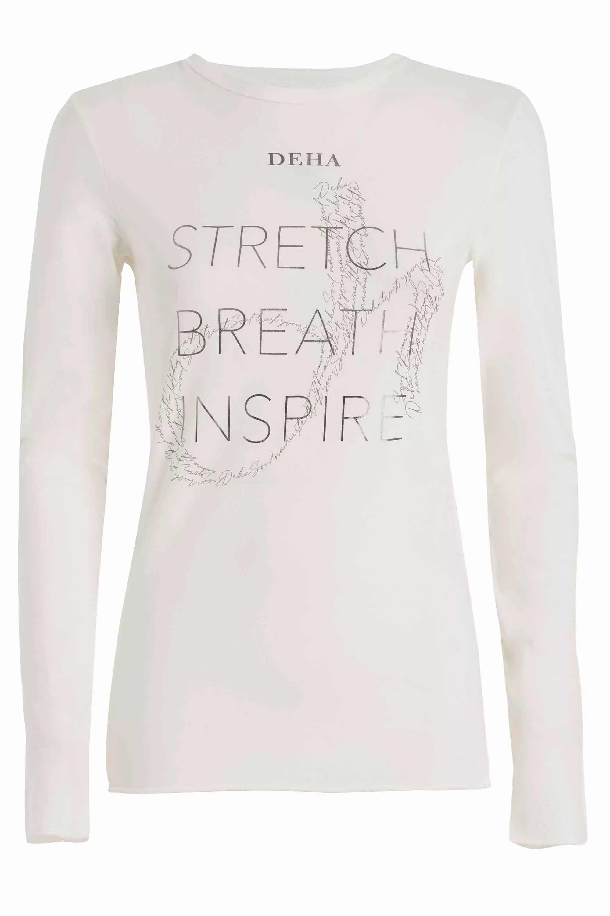 Rinnassa lukee "Stretch, Breath, Inspire".