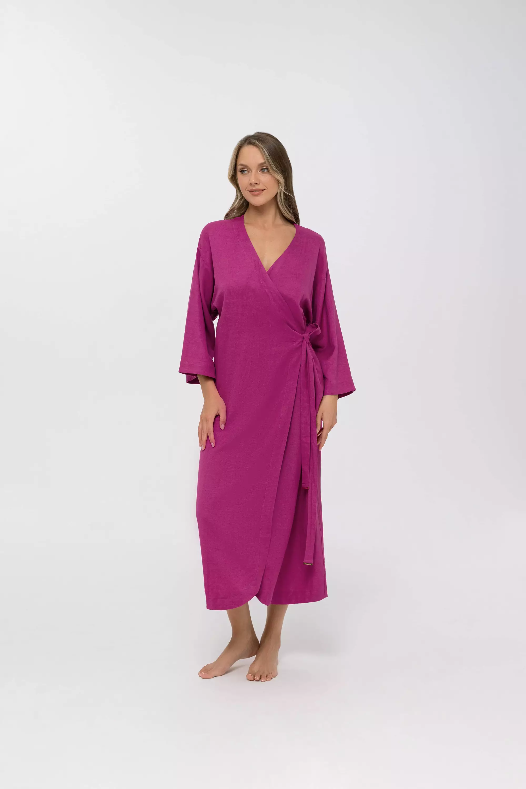 Kimono on kauniisti laskeutuva ja siinä on hiukan vajaamittaiset hihat.