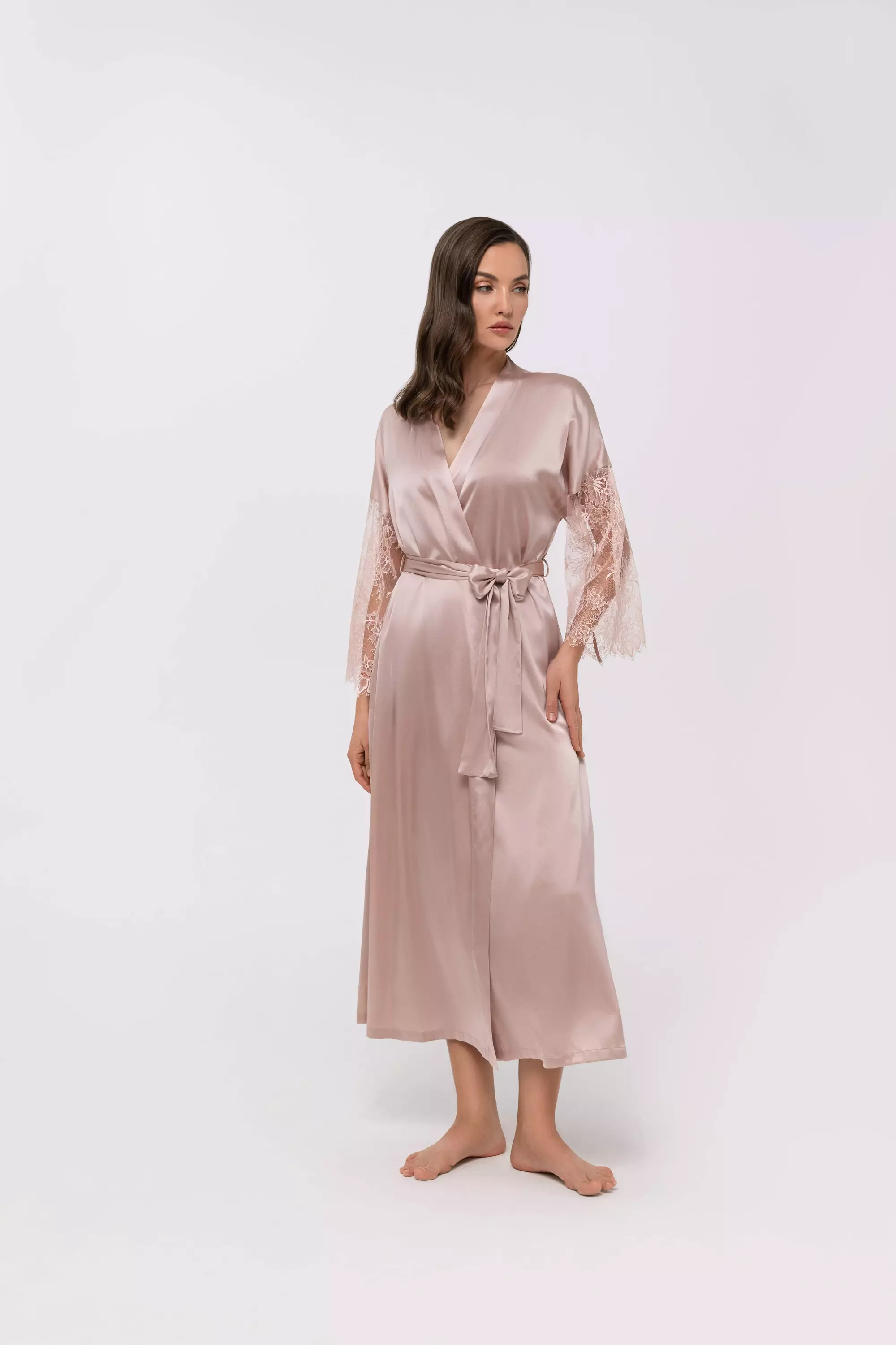 Takki on nilkkamittainen ja sen leveät hihat ovat herkkää pitsiä.
