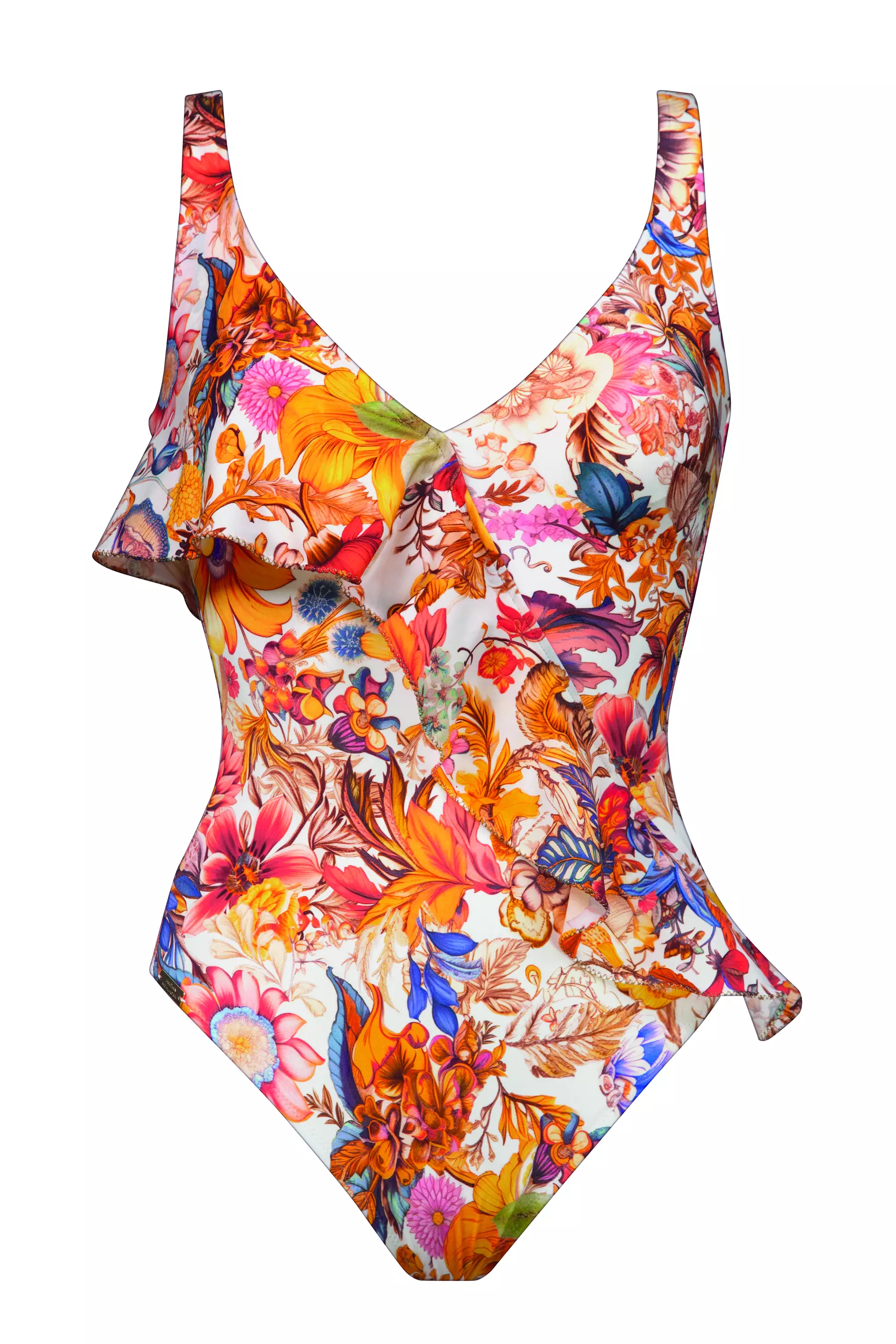 Maryan Mehlhorn upea, kukallinen uimapuku röyhelöillä