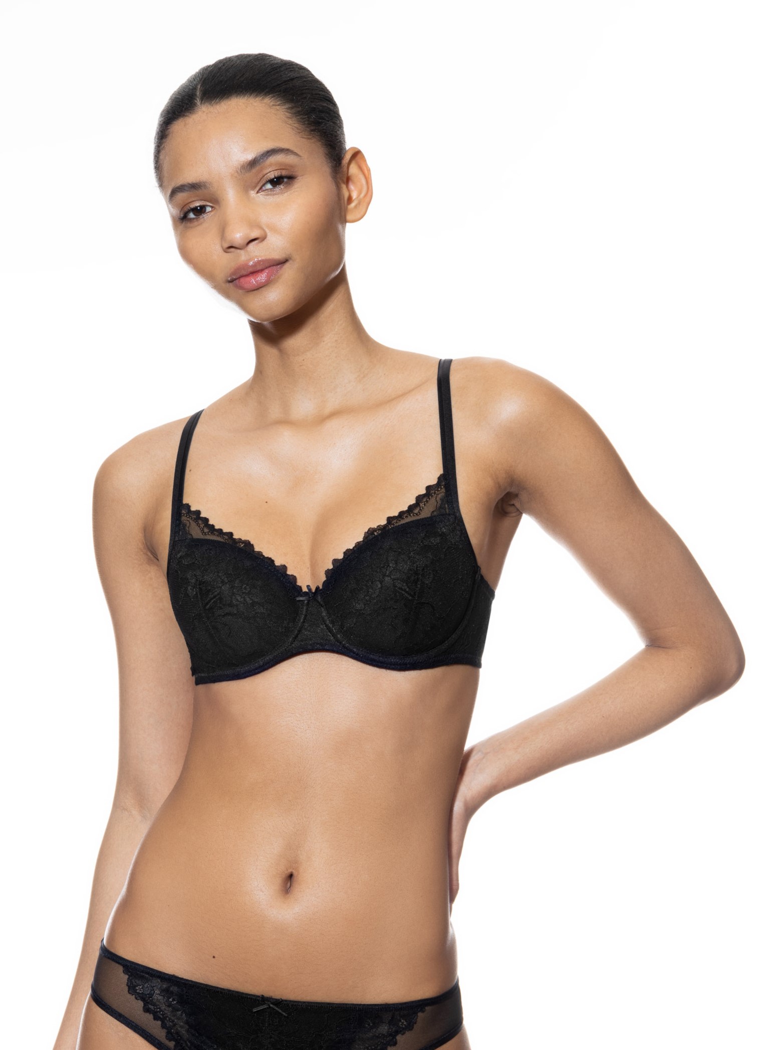 Kuppien pinnassa sekä ympärytksessä on hentokuvioista pitsiä, joka tuntuu iholla ihanan pehmeältä.