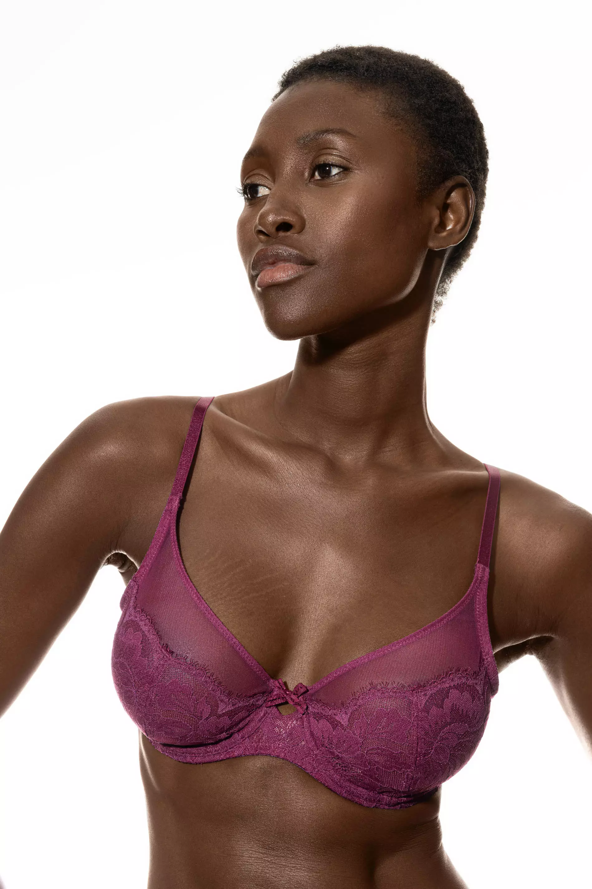 Rintaliivien pitsi on mukavaa myös herkkäihoisille, mutta suoraan iholla tuota pitsiä ei ole lainkaan.