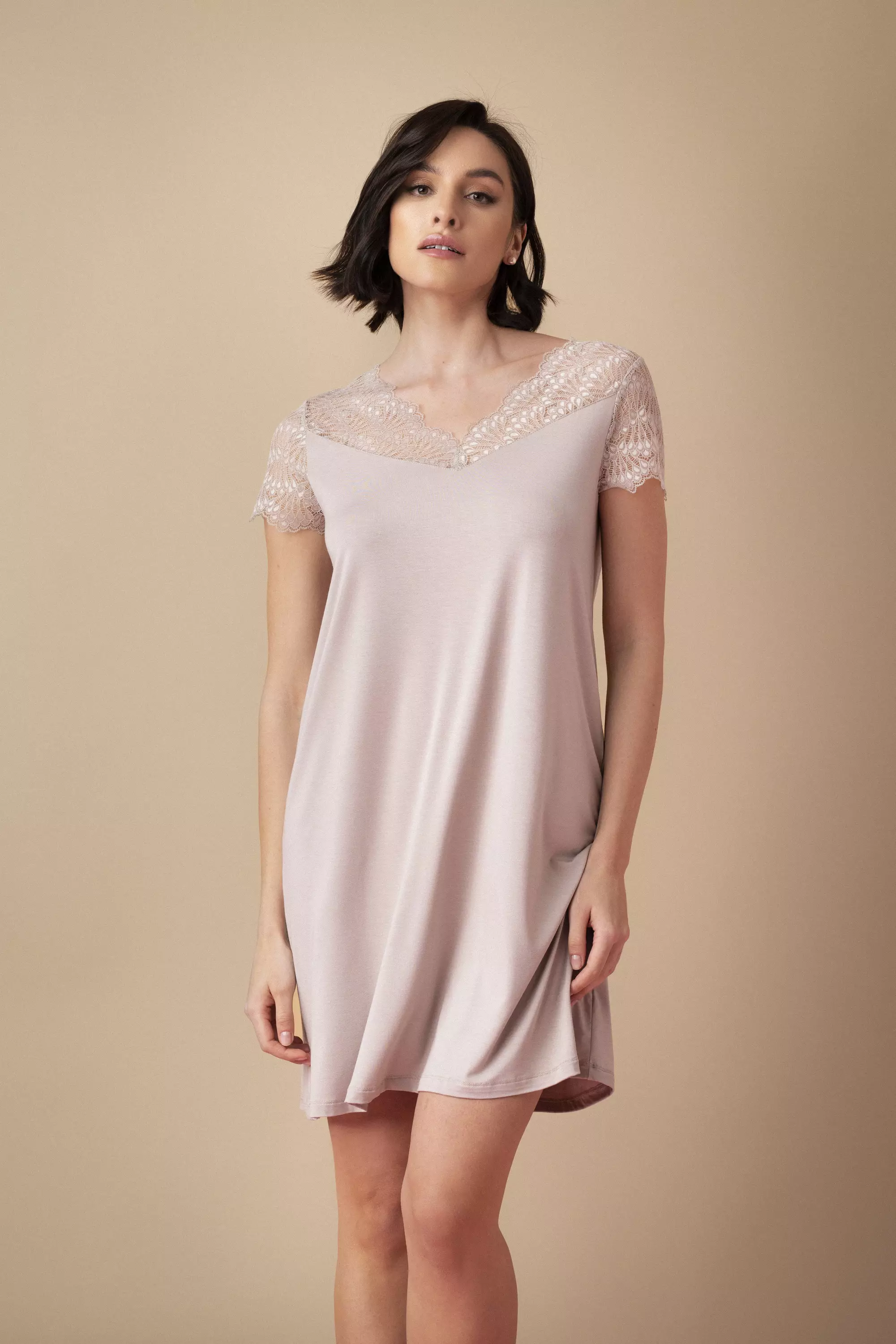 Yöpaita on kokonaan mukavasti joustavaa viskoosikangasta, joka tuntuu iholla ylellisen pehmeältä ja kestää käytössä hyvänä pitkään.
