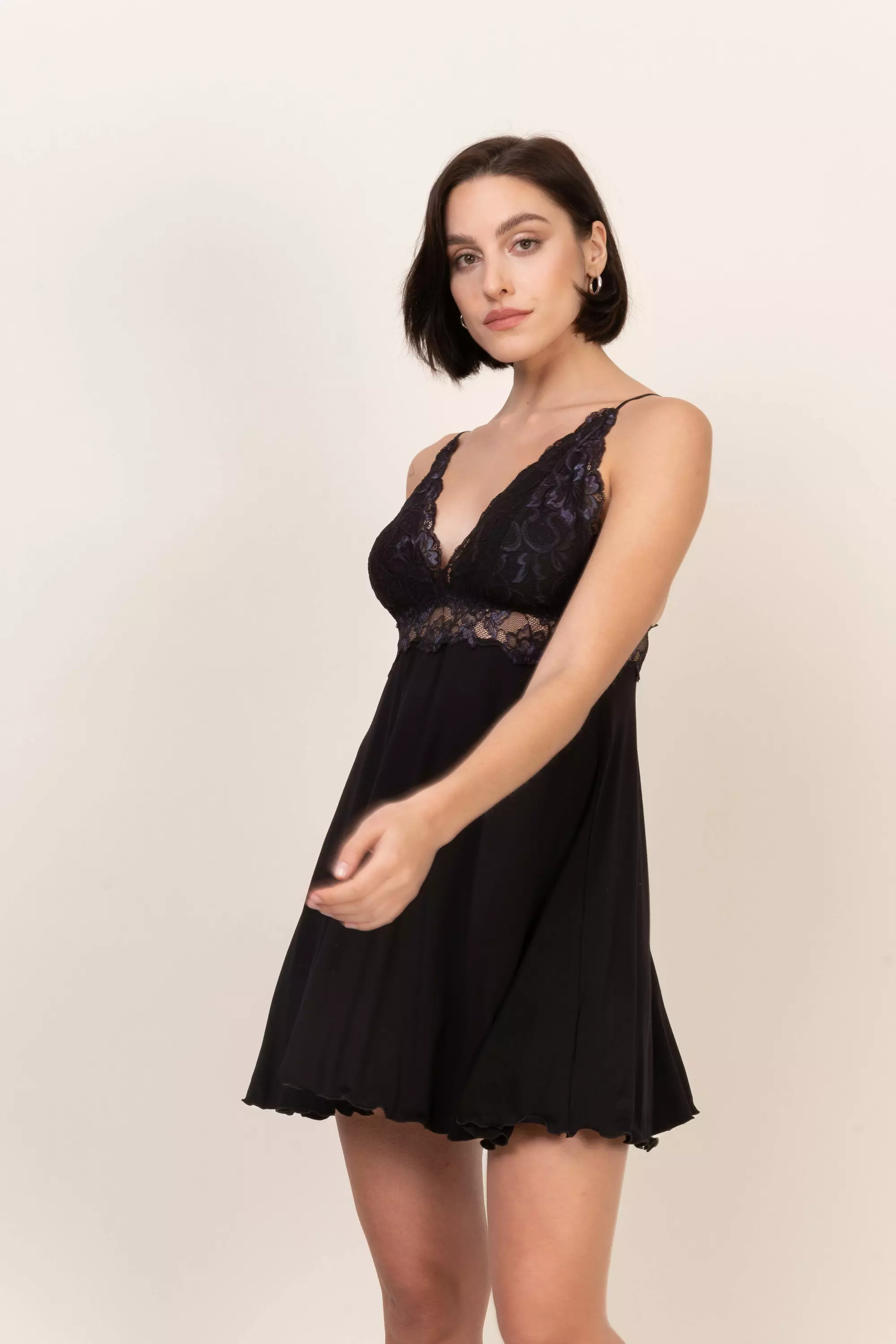 Rintojen kohdalla on kevyt muotoilu ja yöpaita on hiukan napakampi rintojen alta.