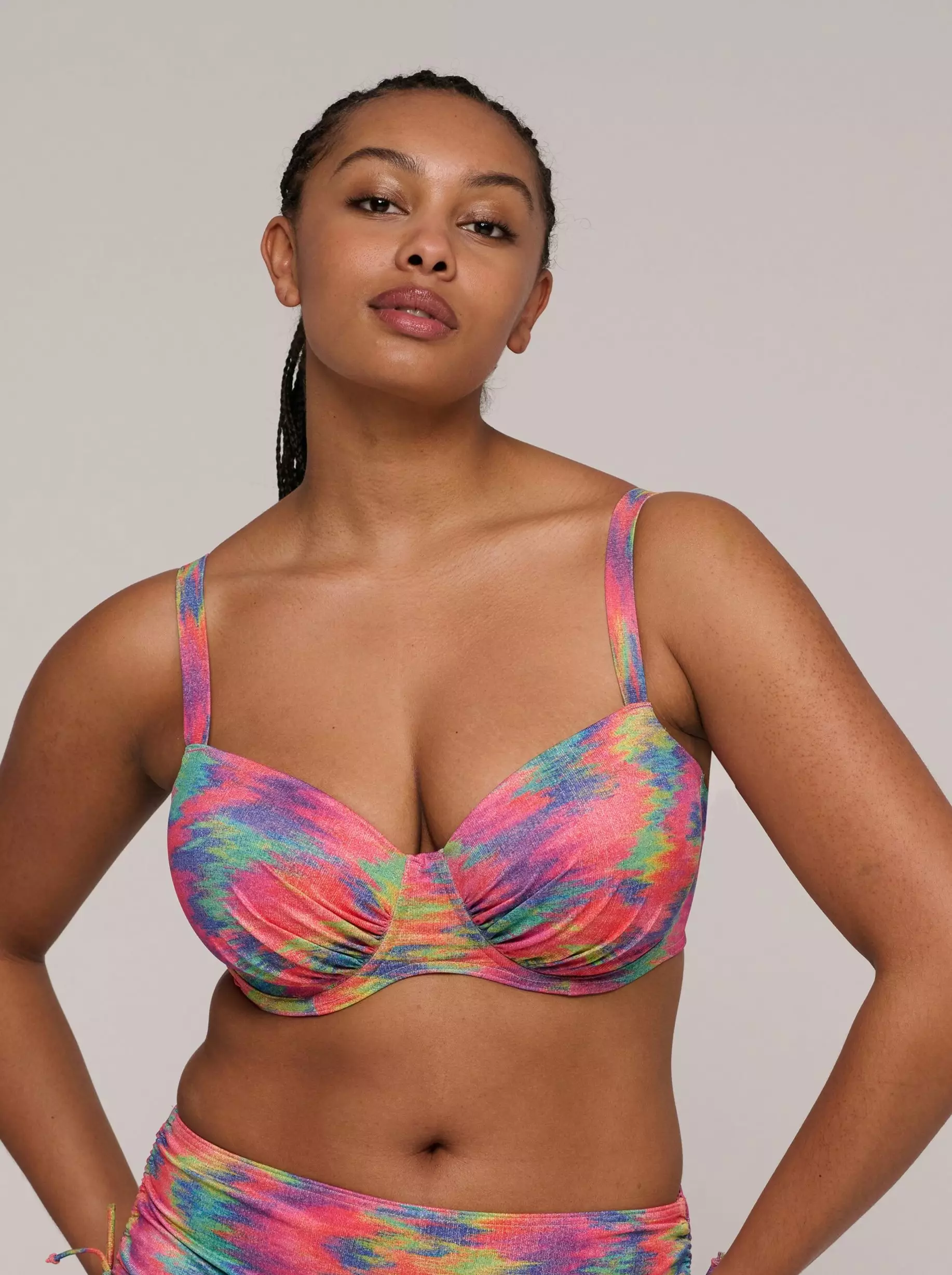Bikinien kangas on kauniin eläväinen ja kevyesti hohtava.
